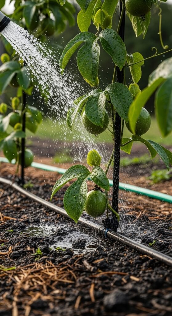 Watering is a cornerstone of passionfruit vine care, requiring deep, regular moisture without waterlogging. Aim for 1-2 inches weekly, adjusting for rainfall and soil typeβ€”more in sandy soils, less in clay. Use drip irrigation to target roots efficiently, minimizing leaf wetness that invites diseases.