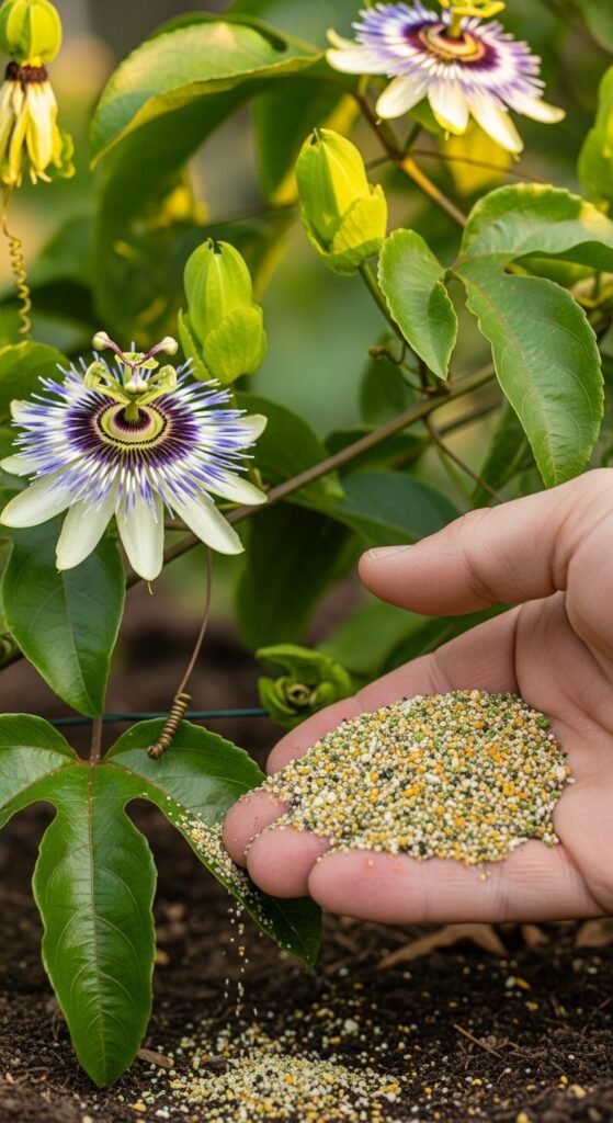 For thriving passionfruit vine care, fertilize with a balanced, low-nitrogen formula every 4-6 weeks during the growing season. Use organic options like compost tea or slow-release granules to provide essential nutrients without promoting excessive foliage over fruit.