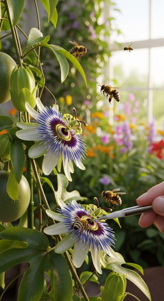 In passionfruit vine care, pollination is key for fruit development, often relying on bees or hand methods. Plant pollinator-attracting flowers nearby to boost bee activity, or gently transfer pollen between blooms using a soft brush if natural pollination is low.