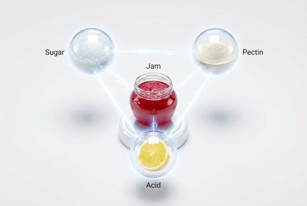 There is nothing quite as disappointing as spending all afternoon picking strawberries and boiling jam, only to open the jar a month later and find… strawberry syrup. The science of “the set” (how jam gels) relies on a precise triangle of three ingredients: Pectin, Sugar, and Acid. If one of these is out of balance, your jam will fail.