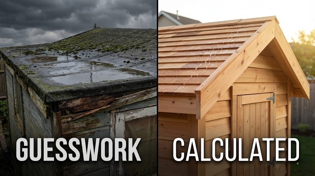 • Medium Slope (4/12 to 9/12): The sweet spot for sheds. Standard asphalt shingles work perfectly. A 4/12 pitch is considered the minimum safe slope for standard shingles.