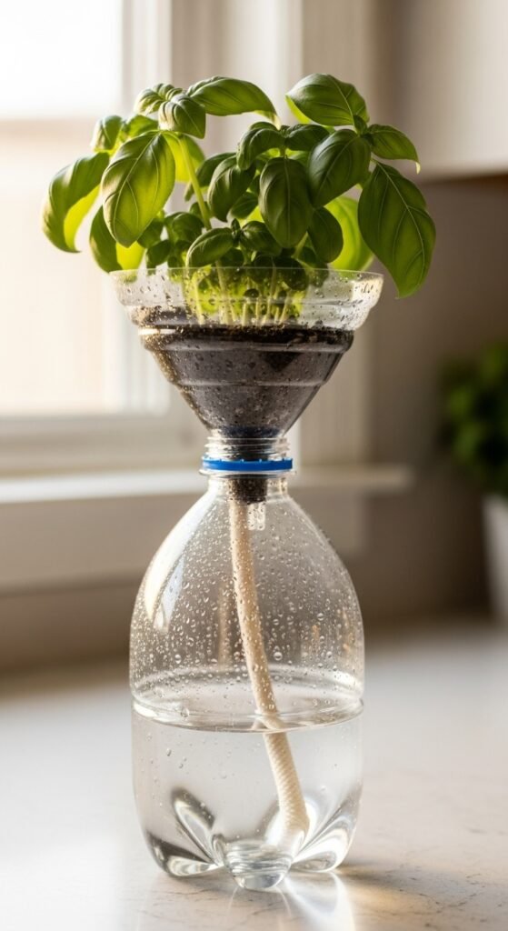The key benefit here is cost-effectiveness and sustainability, as you repurpose waste materials while ensuring consistent moisture for herbs like basil or mint. This setup minimizes evaporation and delivers water directly to roots, ideal for beginners seeking low-maintenance options.