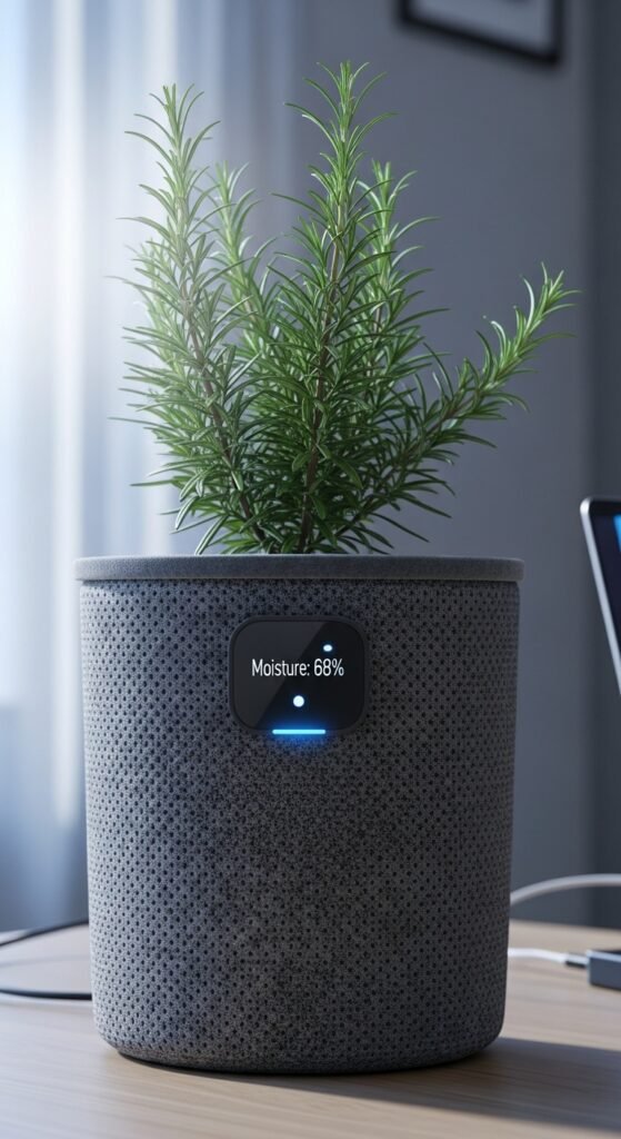 This tech-forward approach ensures optimal moisture levels, preventing stress on herbs like rosemary and integrating seamlessly with smart home systems.