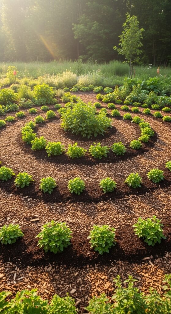 Implementation emphasizes mulch; you enjoy hardy herbs with little effort.