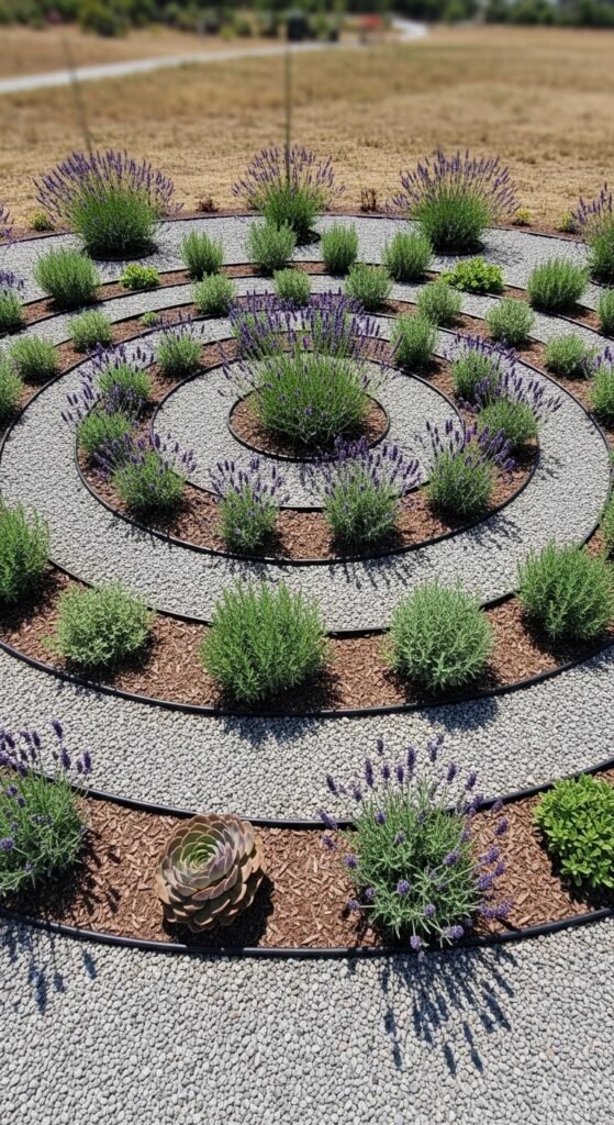 You scale up the spiral in a spacious yard, incorporating it into existing landscapes with a 6-8 foot diameter for abundant planting.