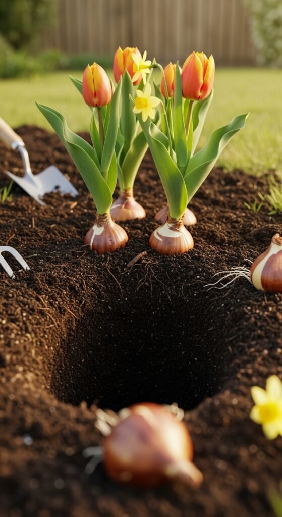 You ensure thriving bulbs by amending soil with compost for drainage and planting at depths three times the bulb’s height. This prevents rot and encourages strong roots.
