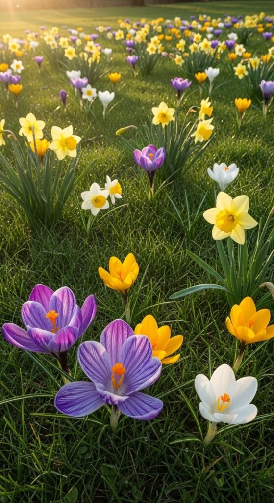 You can transform your lawn into a meadow-like wonder by naturalizing spring bulbs, planting them randomly in grass for a wild, effortless look. Choose hardy options like crocuses or daffodils that multiply over time, creating expanding patches of color each spring.