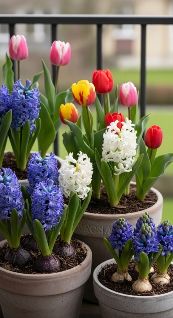 You bring spring bulbs to patios or balconies with container gardening, potting them in decorative vessels for portable pops of color. Mix varieties like hyacinths and tulips in large pots for layered effects, or use single types for simplicity.