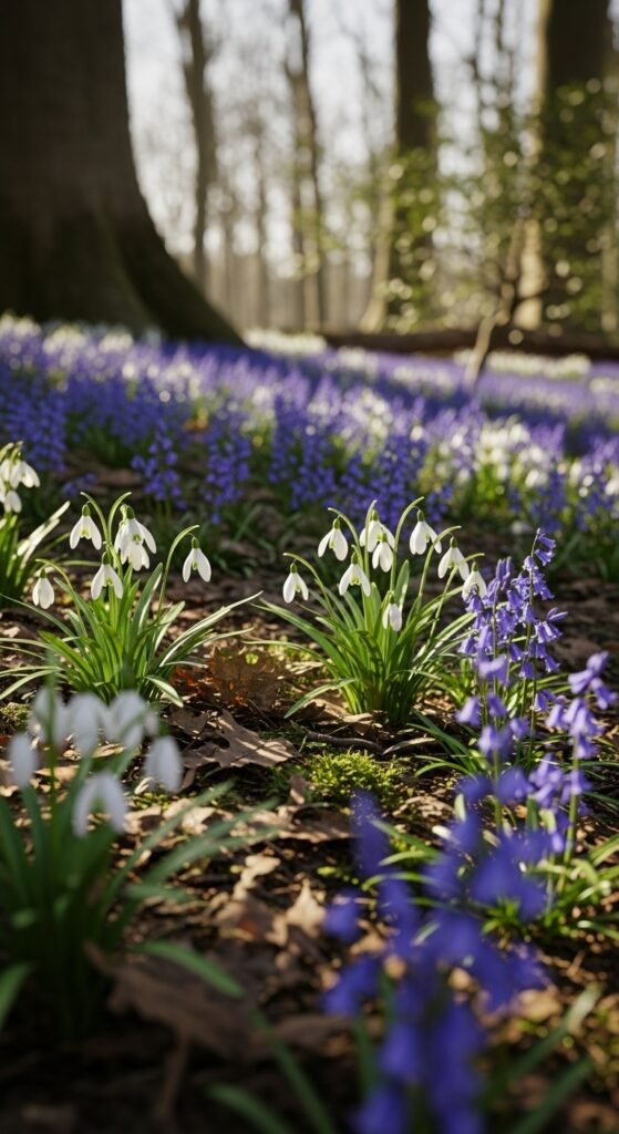 Create a serene, wildlife-friendly habitat that feels organic and timeless. These bulbs often self-seed, expanding coverage naturally. In fall, scatter bulbs in loose soil amended with compost, planting at shallow depths. Minimal watering needed due to natural moisture. For a complete woodland vibe, reference our spring garden checklist.