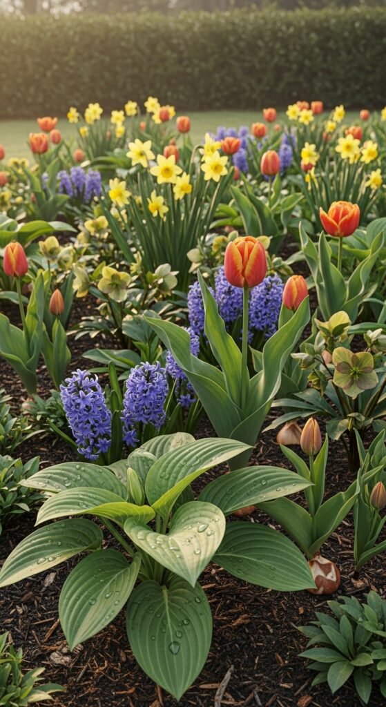 You intersperse spring bulbs with later-blooming perennials like hostas or daylilies, where the perennials’ foliage hides dying bulb leaves. This ensures seamless transitions through seasons.