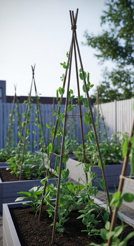 Install supports early to avoid disturbing roots later. Train plants as they grow. Integrate with raised beds for efficiency.