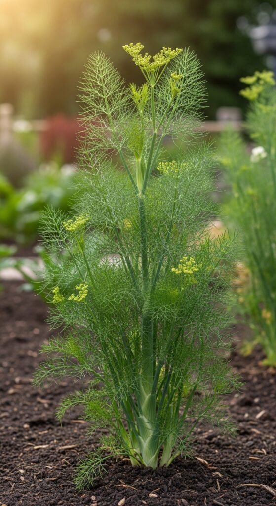 Dry for storage; use both parts for tea. It’s self-seeding and ornamental. Fennel tea provides gentle relief, especially after meals.