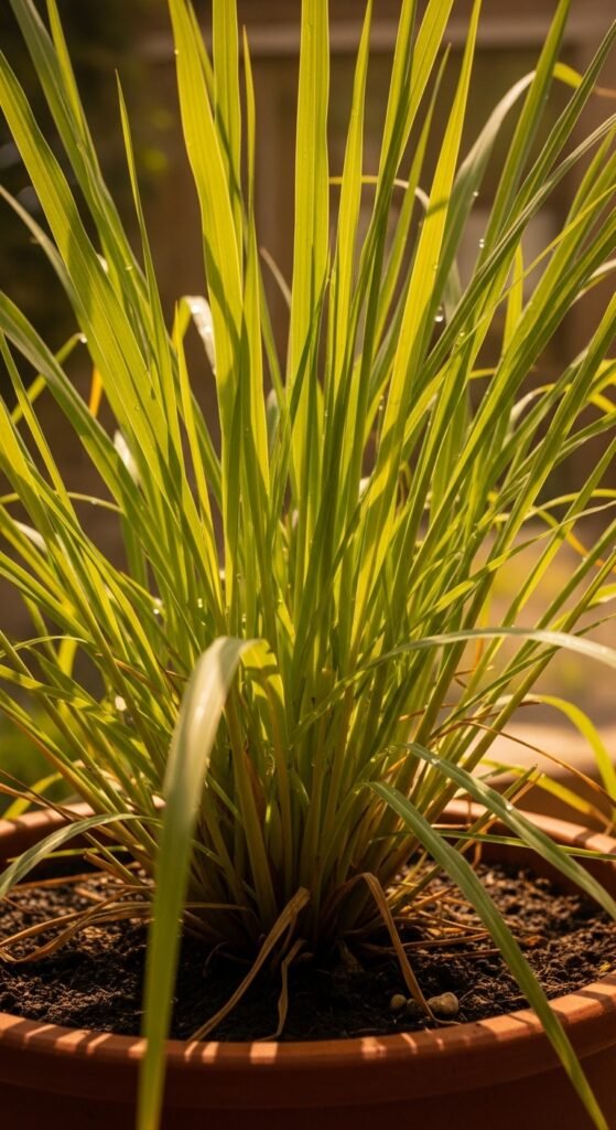 Harvest stalks, chopping for infusion. It’s vigorous in warm areas. Lemongrass tea refreshes and invigorates, ideal for hot days.