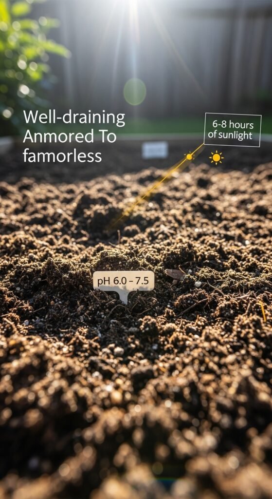 Most tea herbs thrive in well-draining soil with a pH of 6.0-7.5. Amend with compost for nutrients. Provide 6-8 hours of sunlight daily, though some like lemon balm tolerate partial shade.