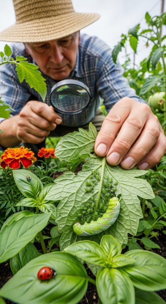 You should regularly inspect tomato plants for common pests such as aphids, hornworms, or spider mites. Early detection allows for timely intervention, preventing widespread damage.