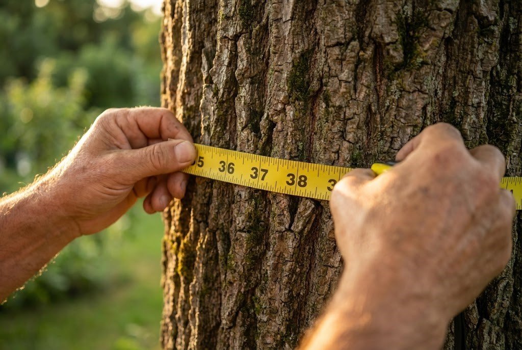 • Tree Diameter (DBH): Use a tape measure to find the circumference of the tree at 4.5 feet off the ground, then divide by 3.14 to get the diameter (DBH).