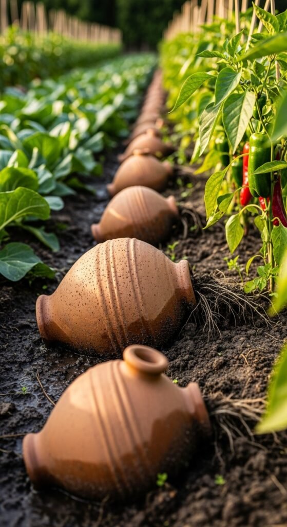 You bury unglazed clay pots filled with water near plants, allowing slow seepage into the soil. Olla irrigation delivers moisture directly to roots on demand.