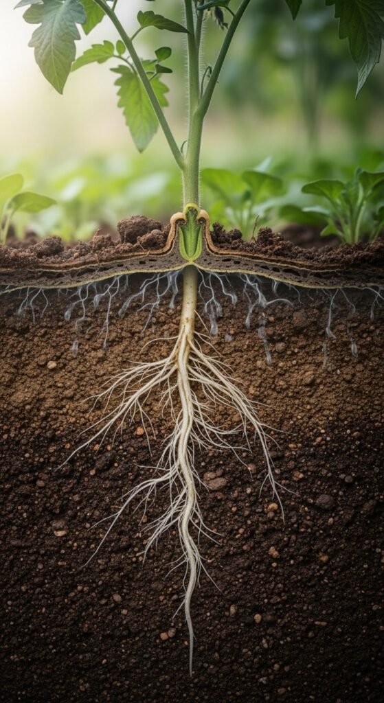 The benefit lies in conserving water and promoting deeper root growth, as plants draw moisture from the soil throughout the day. This practice enhances resilience against heat stress, leading to healthier produce.