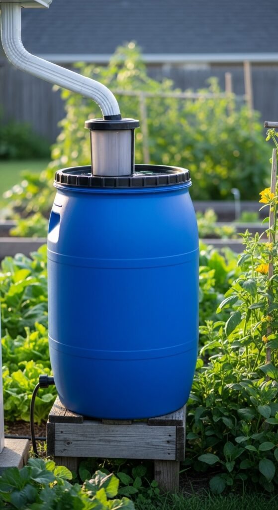 You harvest rainwater in barrels to supplement your watering needs, providing a natural, chlorine-free source for your vegetables. This method captures roof runoff, storing it for dry periods. DIY rain barrel projects are simple and cost-effective.