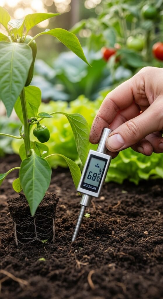 You use tools to check soil moisture, ensuring your vegetables receive adequate hydration without excess. Moisture meter for plants provides accurate readings, guiding your watering decisions.