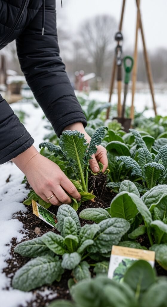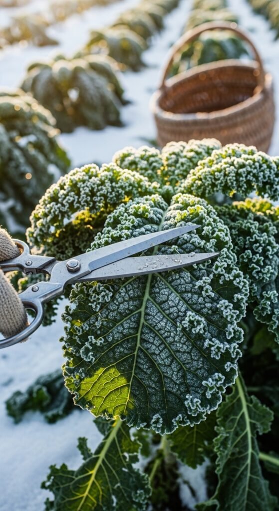 Harvesting in winter demands timing to capture peak flavor, often after light frosts for sweeter greens. You can pick selectively, leaving plants to continue producing where possible.