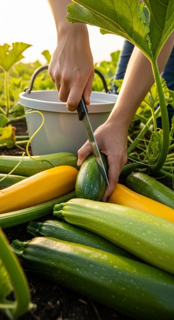 Harvest zucchini and squash at peak ripeness. What picks when 6-8 inches for summer types, fully mature for winter. Why timely: Prevents overgrowth, encouraging continuous production.