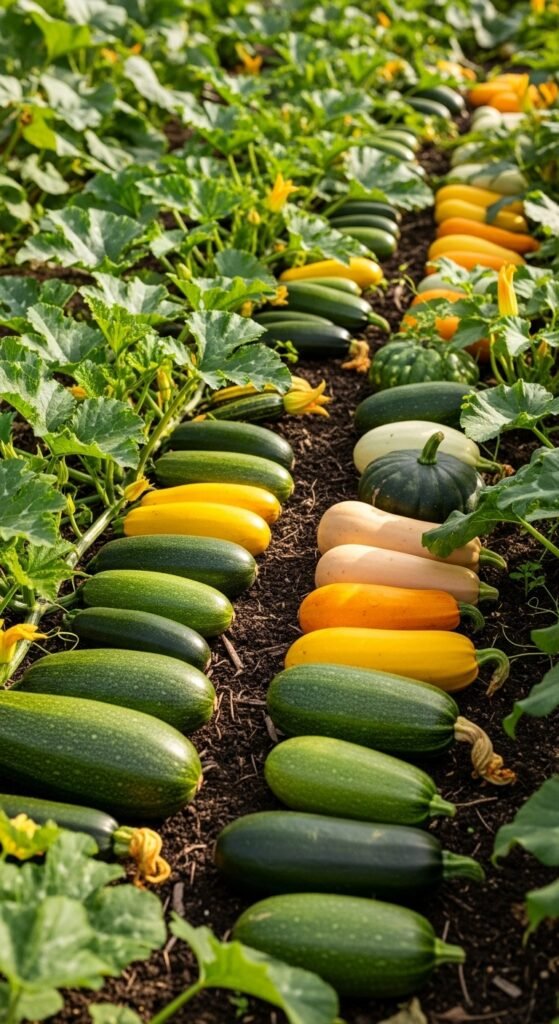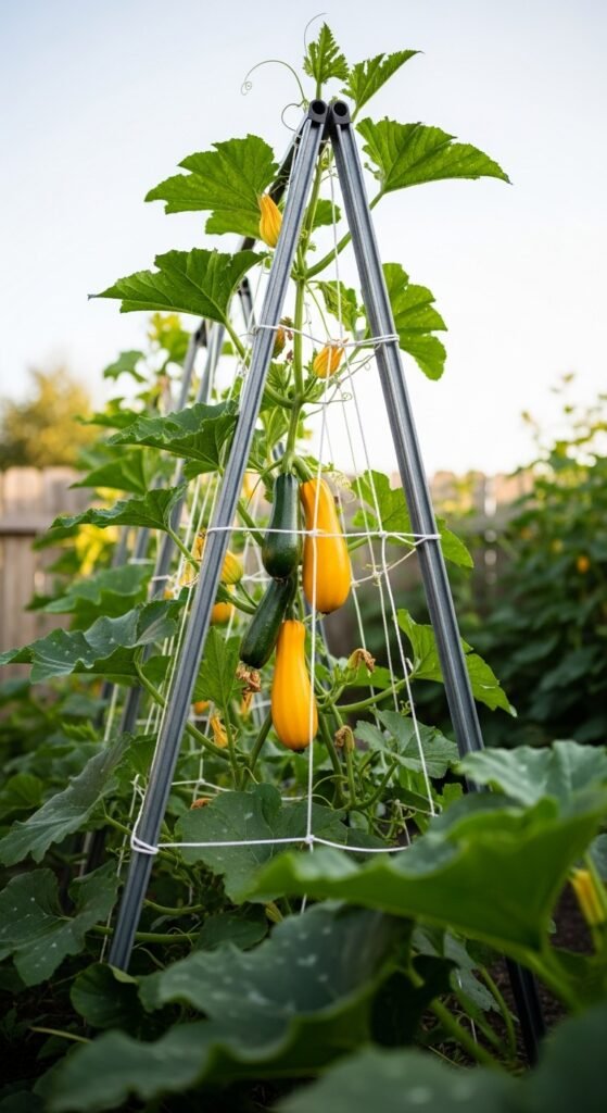 Train your zucchini and squash vertically to save space. What uses sturdy supports for vining varieties to climb. Why beneficial: It improves air circulation, reduces disease, and makes harvesting easier, ideal for small gardens.